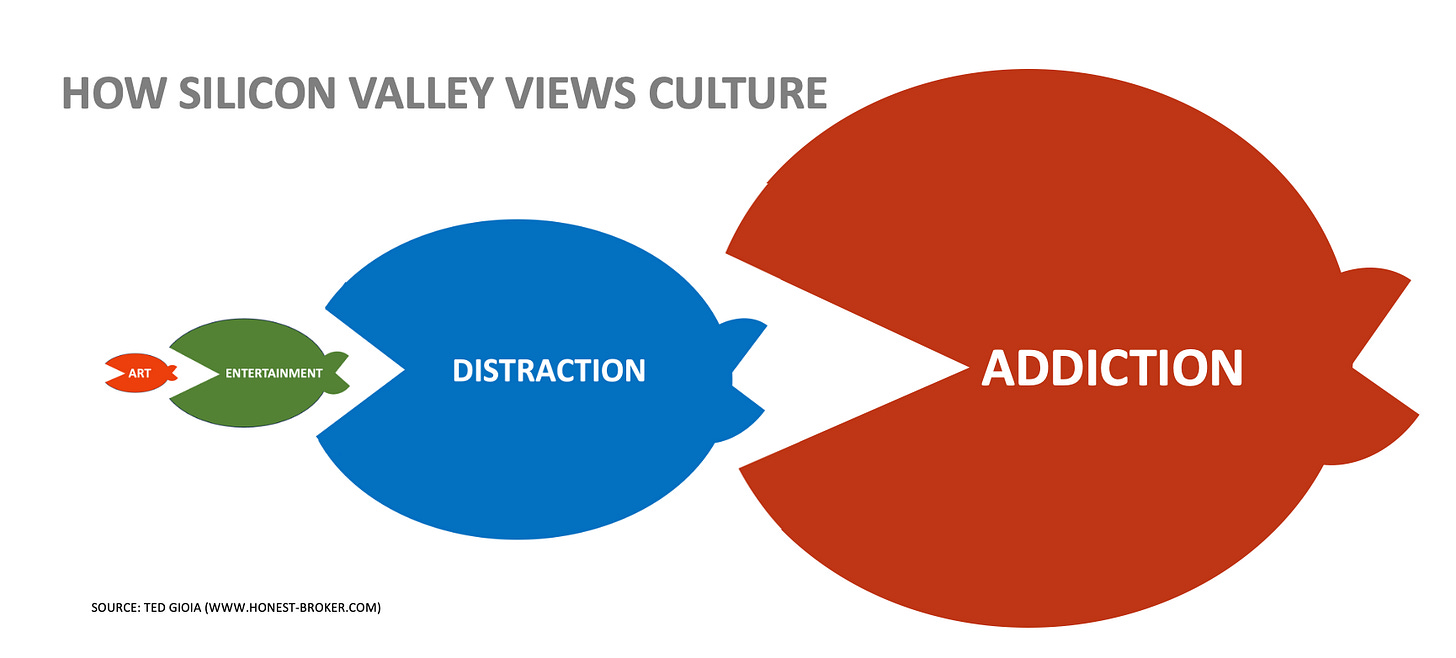 Ted Gioia is excellent here in naming the “post-entertainment culture”: